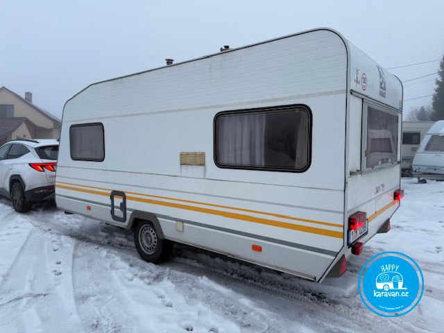 Nabízím k prodeji karavan Knaus Cauntry vhodný pro 4 osob.Váha 800/1000kg.R.V.1993.V zachovalý stav vše funkční.Vybaven plynovým topením,sporák,3-kombinace lednice, integrované wc s vaničkou,rádio,rezerva,stabilizátor,100 km/h,plný stan Isabella.CZ doklady.STK 7/2027.