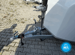 Nabízím k prodeji nový univerzální továrna 2-osy přívěs.Furgon C 255. S bočními dveřmi a zadní sklopnou rampou.Možnost ve více barvách.Váha 350/1300 kg.
